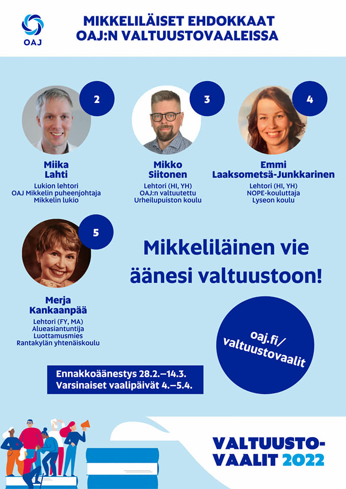 Tässä esimerkiksi OAJ Mikkelin jäsenten joukosta löytyviä loistavia ehdokkaita